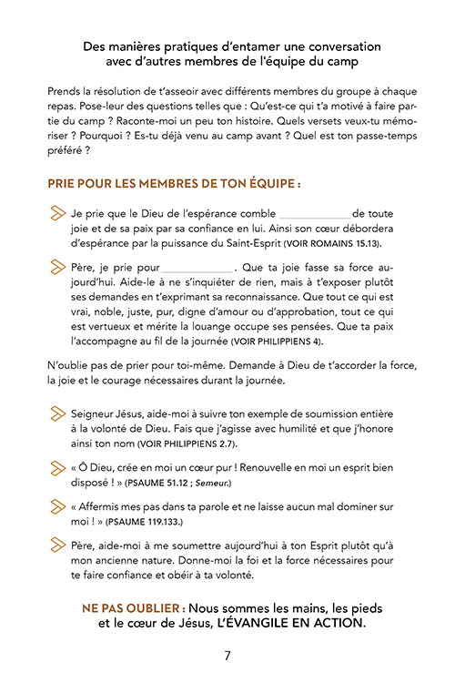 Nous avons écrit ce livre pour aider à préparer le cœur et l’esprit de chaque membre de l’équipe qui s’investit auprès des jeunes au camp, mais aussi en gardant à l’esprit les semaines qui suivent cette expérience incroyable.
